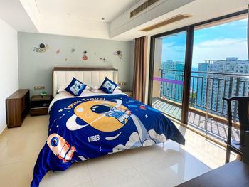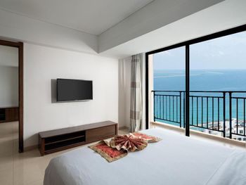 Отдыхали в этом отеле в конце февраля , хоть немер конечно "подуставший", но это больше касается ванной комнаты , но вид с 35 этажа на город -это что-то невероятное хоть в ночное,хоть в дневное время, это того стоит правда, вид на море я бы даже и не хотела, правда невероятная красота , мы снимали неделю и неделю я наслаждалась этими прекрасными видами , потом мы уехали на Ялон бей, завершить пассивным отдыхом наше пребывание в Санье) Кстати если вы живёте на нижних этажах ,вы можете даже без карты проехать на 35й этаж и полюбоваться без проблем этими шикарными видами, я пару раз выходила из номера без карты , так как не сразу две карты на семью взяли и без нее спускалась и доезжала обратно без проблем , раньше там была столовая или ресторан ,поэтому доступ на этот этаж без карты возможен , ресепшн на 6 м этаже , спасибо кто -то отзыв оставил , так бы искали ,а прилет был поздней ночью . Расположение идеально этого отеля , рядом миллион кафешек, мы даже не брали завтраки и не пожалели , много кафешек с русскоговорящими Китайцами и даже меню на русском у них , в Дадунхае очень много русских туристов , поэтому и Китайцы уже многие не плохо говорят на русском ) До моря идти минут 7-10 с ребенком , ближе идти к морю если выходить из отеля на право и через дорогу прямо . Там же через дорогу на углу Катюша на английском написано агенство вроде как , так вот там каждый день стоит Китаец ,Гид , нам его посоветовали , реально цены ниже чем при отеле у него , через него покупали экскурсию на источники и ферму Обезьянью , понравилось все , он себя называет Юрием Гагариным ) На -1 м этаже супермаркет, тоже очень удобно , цены вполне нормальные , сравнивала с Ананасом , определенные продукты даже дешевле , но не все . В общем если рассматривать не только пляжный отдых , то очень даже стоит рассмотреть этот вариант. В этом отеле так же есть бассейн, но мы не ходили , другие были приоритеты ! Берут залог ,по выезду возвращают , либо 5000 рублей ,либо 300 юаней .