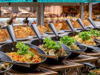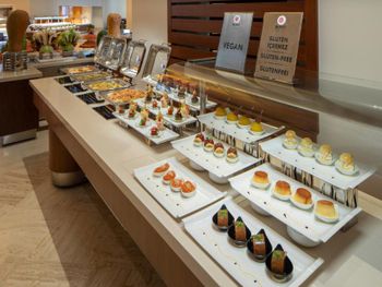 Гостям подают завтрак «шведский стол», континентальный завтрак или полный английский/ирландский завтрак.