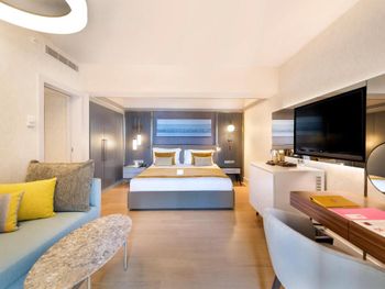 Это первый отель, который произвёл на меня приятное впечатление уровнем и качеством сервиса, вежливостью, отзывчивостью персонала, удобством инфраструктуры, разнообразием блюд. Вкусные коктейли, весёлые официанты, тёплое море, комфортный пирс, детская комната с интересными занятиями и активностями для детей, замечательные, профессиональные группы с живым музыкальным исполнением. Чистота, красота и радость вокруг. Мне было приятно и комфортно, весело и тепло. Спасибо всем сотрудникам отеля за чудесный отдых!