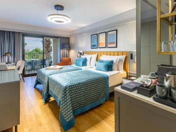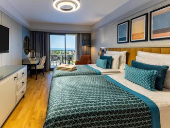 Приехали с семьей в этот отель, чуть раньше чем час заезда, пришлось подождать некоторое время пока номер будет готов, но нам совершенно бесплатно сделали апгрейд номера на больший, за что большое спасибо данному отелю😊В номере было достаточно чисто, пляж находится близко к отелю, бассейны хорошие👍Территория отеля большая и красивая) горки классные! Хочу особо отметить девочек из kids zone, отлично развлекали ребенка, всегда придумывали интересные занятия, и развлекалки👍👍👍 Мероприятия проводимые отелем несомненно круты, например пенная вечеринка или пивной фестиваль 😊Теннисные столы и дорожки для гольфа 👍👍👍