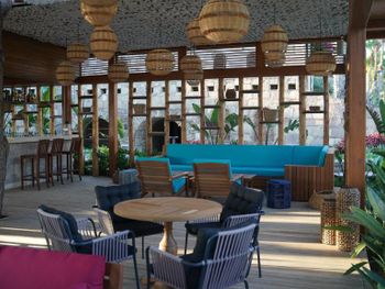 Отдохнуть спокойно вам тут не удастся! Бассейн и бар находятся в середине отеля как в амфитеатре и орущая - реально орущая в усилители музыка не даст вам отдохнуть ни днем ни вечером. Днем это будет пенная вечеринка, вечером живая музыка 70 годов.. почему это нельзя проводить в закрытом лаунж баре или баре ближе к морю непонятно.. все люксы выходят балконами в эту сторону так что вам придется наслаждаться этим мракобесием.