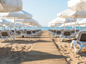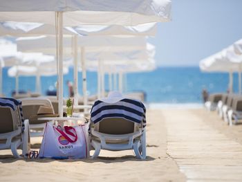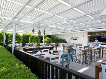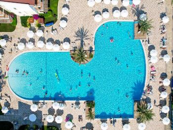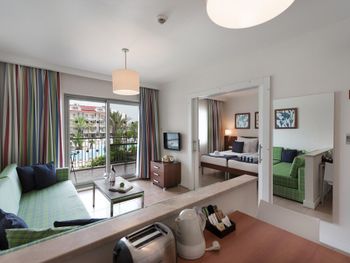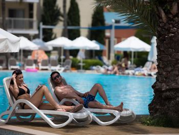 Для нас минусов оказалось много, возможно для кого то они будут не существенные, но лучше знать о них. 1. Интернет практически отсутствовал, очень и очень медленный, про работу речи вообще не идет, разве что просто что-то открыть в браузере и то долго будет. 2. Территория - ее нет совсем. 3. Про бассейн - сам он очень хороший, большой, но мне очень не понравилось то, что там почти в любое время могут играть в футбол прямо посередине бассейна, тоесть нет какого то отведенного для него времени, это очень мешает купаться, а играть там могли по пол дня, а с другой стороны бассейна занятия аква аэробикой, и в итоге купаться негде а народа в бассейне всегда очень много. 4. Про питание - оно в целом нормальное, очень не понравились мухи на еде. И это скорее не все включено, а полный пансион, т.к. есть вне столовой негде, есть бар снек на пляже, работает с 12 до 16 с фастфудом, очень неудобное время работы. И также кондитерская с пирожными, на этом все. Поесть больше негде. 5. В номере нам достался гудящий кондиционер, ночью включать его не могли, вызывали мастера, ничего нам сделать не смогли, номеров для переселения не было. 6. Пляж сам шикарный, но он на много отелей, и народа там много. Также у нашего отеля не было навесов, а только зонтики, что не очень удобно все же.