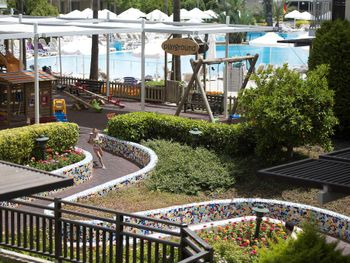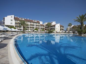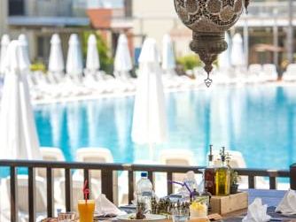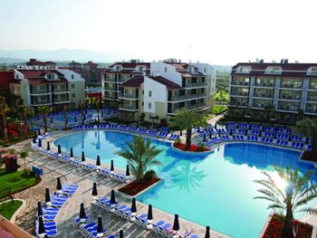 Второй раз приезжаем в этот отель семьей, и второй раз он нас радует. Плюсы: -очень чистый большой бассейн, дети в восторге от него -две водных горки -море в 3 минутах ходьбы, очень близко. собственный прекрасный песчаный пляж с бесплатными зонтиками и лежаками. море прозрачное, очень чистое, вход в воду плавный - идеально для купания детей -рядом в море впадает небольшая речка (на речку можно выйти если пойти при выходе из отеля направо), в ней водятся огромные черепахи, можно посмотреть, как они плавают, а если повезет - как откладывают яйца (вроде чаще всего черепах видно в районе 6-7 вечера) -в 15 минутах езды развалины античного города Сиде, небольшой но интересный археологический музей, впечатляющий античный амфитеатр, развалины храма Аполлона на берегу моря -в 15 минутах езды nova mall с брендовыми магазинами (waikiki, h&m, skechers и прочее), где можно очень выгодно закупиться качественной и недорогой брендовой одеждой -небольшой магазин на территории отеля, можно купить предметы первой необходимости -чистые, просторные уютные номера -в номере есть все что нужно, включая фен, сушилку для белья, утюг и гладильную доску, посуду для еды и готовки, плиту, чайник, микроволновку, холодильник -прекрасная еда на шведском столе (огромный выбор блюд, включая разные турецкие закуски, рыбу, фрукты - свежая клубника, арбузы, дыни и пирожные тридцати сортов) -очень приятный внутренний двор отеля, вообще сам отель с эстетической точки зрения выгодно отличается от соседних отелей, на него приятно посмотреть