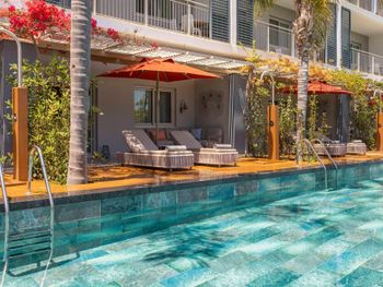 Пляж. На автобусе ровно 2 минуты. Пешком 8. Но по жаре - нереально. Пляж чистый, лежаков много. Полотенца меняли на пляже. Бар отличный. Днем ланч. Чистят, убирают. Несколько дней были сильные волны. Но все равно - купаться комфортно.