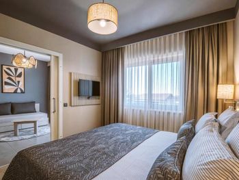 Номера - великолепно. Семья с тремя детьми - 2 спальни и большая гостиная зона. Огромный балкон. Вид был на дорогу - но из-за работы кондиционеров шума не слышно. Боковой вид на море. Много шкафов и полок. Ремонт очень стильный. В номере кофемашина.