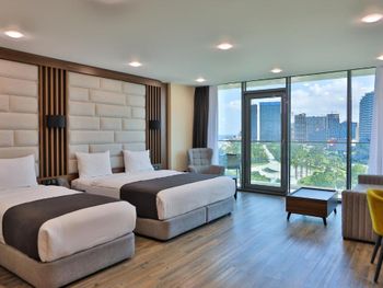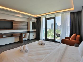 К счастью, наше пребывание в Батуми было кратковременным (3и ночи). Свита с видом на море не оправдала наших ожиданий: в туалете был очень неприятный и сильный запах, который распространялся по всему номеру. Полы устланы небольшими кусками линолеума, который был плохо приклеен и, везде задирались края. Мы все время спотыкались и, боялись упасть. Балкон был плохо убран. Уборка номера заключалась в замене полотенец, уборки туалета и добавлении бутылочек с водой. Полы не убирались. На нашу просьбу поменять номер на такой же, но нормальный, нам сказали, что номеров той же ценовой категории нет. Есть только более дешевые и без вида на море. Так как нам очень хотелось иметь выход на балкон с видом на море (слушать шум прибоя), мы решили остаться. Надо отметить, что кровати были комфортные, белье чистое. Кондиционер работал хорошо. Персонал был доброжелателен. Завтрак мы не заказывали У нас остались плохие впечатления от пребывания в гостиннице, думаю мы вряд ли вернемся.