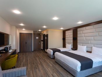 В пожеланиях при бронировании попросили номер без тв-сета перед кроватью, но нам достался именно такой номер. Убирать номер горничные приходили в неудобное время - в первый день в 17:30, что очень поздно, а в день выселения за час до чек-аута, что тоже не совсем понятно… В номере очень шумно от стройки