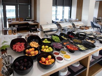 По утрам для гостей сервируется завтрак «шведский стол», континентальный завтрак и халяльный завтрак.