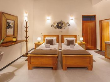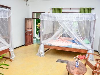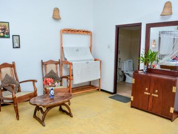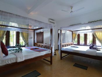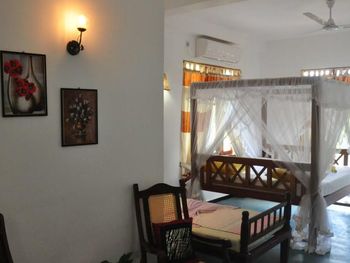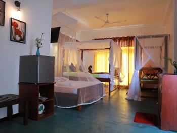 Классный отель! Один из лучших в Унаватуне. Мы взяли номер "Аппартаменты" с двумя спальнями и кухней. Это идеальный вариант для семьи или компании друзей. В номере две отдельные спальни, каждая закрывается на собственный ключ. В каждой спальне огромная кровать (с хорошим матрасом и идеально чистым бельем) и своя ванная комната (умывальник, унитаз, душ- сантехника в отличном состоянии). Горячая вода - круглосуточно. Еще есть огромный холл , с мягким диваном и креслами для вечерних посиделок. Детям есть где побегать и поиграть прямо не выходя из номера :)) Еще есть столовая - с высоким столом и стульями - удобно для завтрака, обеда, и если надо поработать за компьютером. Ну и кухня - супер кухня со всем необходимым -чашки, ложки, стаканы, газовая плита, эл. чайник, духовка!!! и даже блендер для вкуснейших соков и милкшейков. Для семьи с детьми это мегаудобно,можно в любое время сделать вкусный и полезный коктейль не выходя из номера. Еще есть холодильник! В шри-ланке это маст-хев!