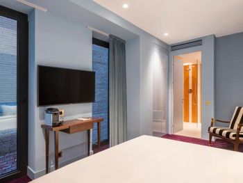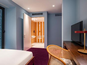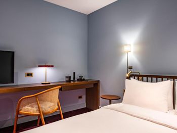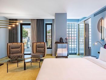 Интерьер номера и отеля со вкусом. Месторасположение отеля. Хороший WiFi, кофемашина с капсулами, чай, халаты, тапочки, удобная кровать. Персонал отеля очень дружелюбный.