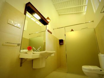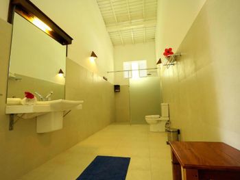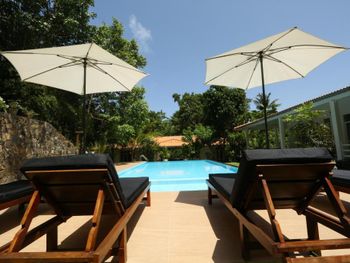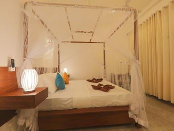 Красивая, ухоженная территория, два бассейна, один на солнце, другой в тенечке, соответственно немного разная температура воды. Дают пляжные полотенца. Комары:) Уютный номер, большая ванная комната. Уборка каждый день. В номере все необходимое, все что заявлено в описании, все работало, кроме телевизора :). У нас он был в наличии, но не было подходящей розетки, чтобы включить, то есть просто как элемент декора. Проблема ужасного вайфая решается с помощью индивидуального роутера в номер, просили у хозяина. Завтрак - хлопья, яйца + сосиски / фасоль / некие рулетики, фрукты, тосты, пара каких-то десертов. Чай, кофе, сок. Один раз были французские тосты, жалко, что только один раз. В целом, неплохой завтрак. До пляжа идти минут 10, пляж очень красивый, есть место для купания для детей - совсем без волн, и для взрослых. Хотя центральный пляж Унаватуны для купания нам больше понравился. До Унаватуны (а значит до магазинов, ресторанов и т.п., рядом ничего такого нет) добираться на тук-туке, минут 7. Пешком далековато.