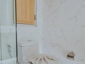 Интересный вариант с прозрачным дверями в душ. Расположение очень близко к ночному рынку хорошим кафе и основному повороту, вы как бы в начале променада набережной. Всё близко. Вид на море и бриз.