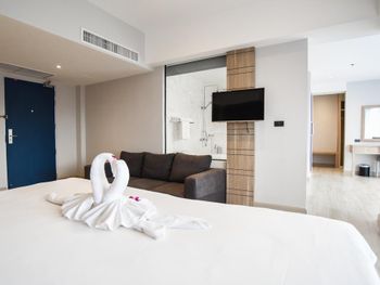 Номер был тихий, но балкон в плотную выходил на стену соседнего здания. Зато кондиционер работал так шумно, что приходилось спать в берушах. Очень старые, застиранные и серого цвета полотенца. Так же в номере переодически пропадала вода.
