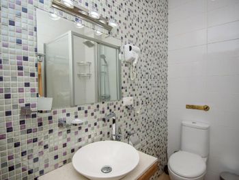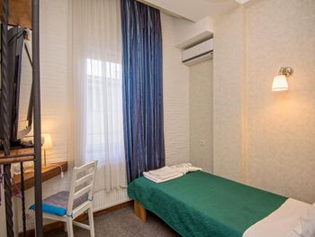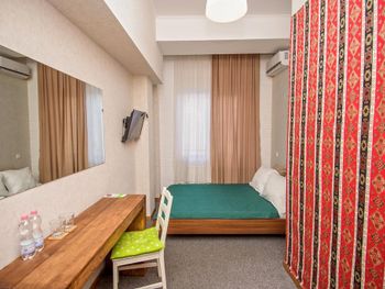 В нашем номере 7 не работал кондиционер в +32, когда номер был на солнечной стороне, попросили администратора решить вопрос, но, к сожалению, придя вечером в душный номер ничего не поменялось. Занавески были в дырках, полотенце для рук также с огромными дырами, другие были сильно застираны. В ванной забит слив, когда моешься стоишь на 2 см в воде, также вся ванная комната после мытья в воде. Постельное белье все синтетическое и очень сильно электризуется.