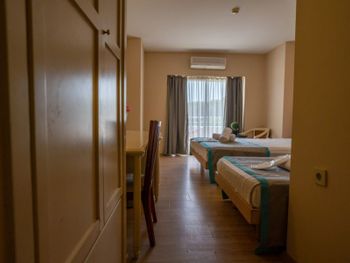 В номере: индивидуальный кондиционер, спутниковое ТВ, телефон, мини-бар (пополнение водой - ежедневно), фен, сейф - $, Wi-Fi. Покрытие пола - ковролин/керамическая плитка.