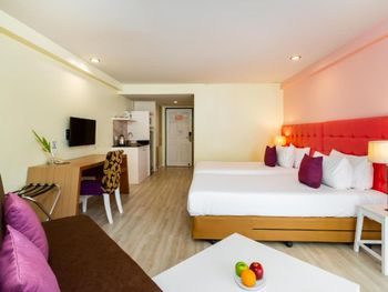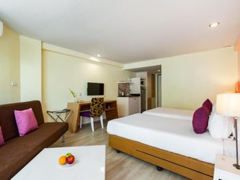 Очень удобное месторасположение. От гостиницы до дельфинов ходит бесплатный тук-тук. На остановке дельфинов расположена кнопка вызова бесплатного тук-тука до гостиницы. Рядом ТЦ Терминал 21. Завтраки вкусные и разнообразные. Очень красивый вид на море с балкона. В номере большой холодильник и мини-кухня.