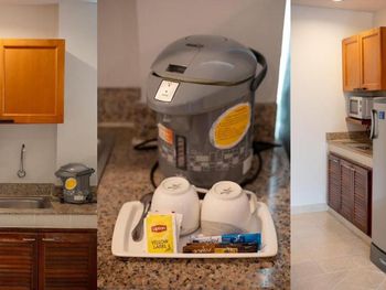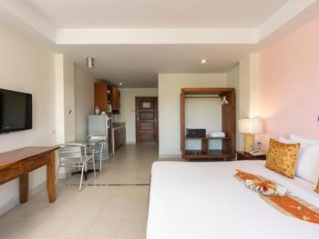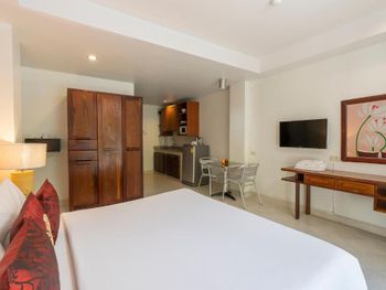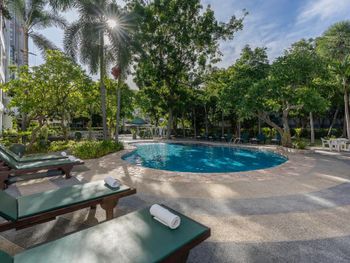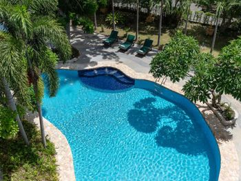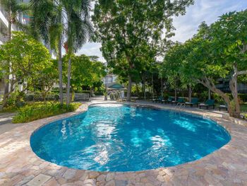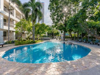 Неплохой бассейн. Кухонная зона в номере. Отличное месторасположение при наличии арендованной машины - очень быстро можно выбраться в любую часть города, выезд в четыре направления. Рядом FamilyMart, 7-Eleven, аптеки и заправочная станция, если берёте в аренду байк или автомобиль.