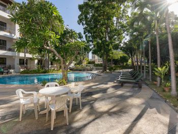 Номер бронировали без завтрака. Отель расположен в тихом спокойном месте. В Паттайе такое удобство встречается не часто.Отель находится близко от торговых центров .Теско Лотус и 21-й терминал. На такси за 3 доллара (в батах) можно добраться в любую точку Паттайи через приложение Bolt. В 2-х минутах от отеля расположен 7\11. Наличие прекрасного бассейна. Наличие пальм посреди отеля и несколько дружелюбных карпов. Очень позитивный персонал.