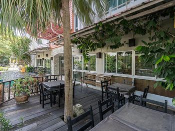 Очень красивая территория с рыбками и зеленью. Бассейн теплый, с разной глубиной, вода чистая. Номер с балконом. Завтрак выбираешь из нескольких вариантов при заселении и утром приносят в номер горячую еду в контейнерах, очень много и вкусно. До автовокзала 15 минут пешком, до ТЦ столько же, только в другую сторону.