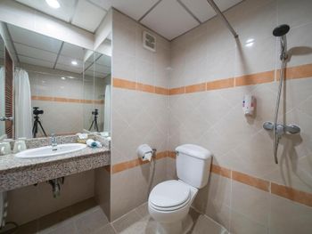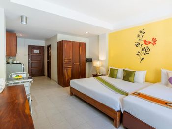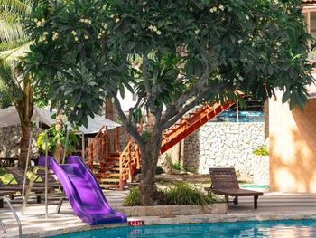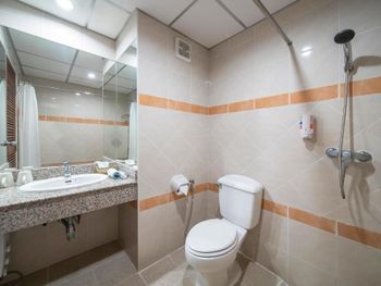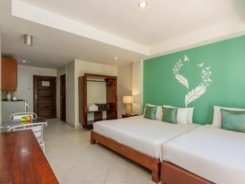 Необходим залог наличными 500 бат - может быть неудобно для тех, кто после выселения сразу едет в аэропорт, эти деньги могут оказаться потом невостребованными (как в нашем случае). В отеле полным ходом шла стройка - и внутри (стояли строительные леса прямо посреди гостиницы), и снаружи (занимались цементированием пандуса около бассейна). Само собой, никто об этом заранее не предупреждал. В номерах постоянное ощущение отсутствия чистоты - то ли уборку делают плохо, то ли материалы такие выбраны. Намучились с горячей водой - в номере стоит индивидуальный подогреватель, и ему для включения необходим очень сильный напор. Первые два дня вообще этого не поняли и мылись холодной водой, потом, когда разобрались совместно с персоналом, включали с душа максимальный напор, и только в таком случае подогреватель работал. Возможно, это глюк только в нашем номере.