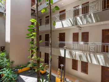 Отель очень приятный, на первом этаже садик с прудом и карпами, во дворе сад и бассейн, было здорово отдохнуть. от моря конечно далековато, но везде ходят тук-туки и можно быстро доехать. Рядом супермаркет, кафе, автобусный терминал. Завтрак огромный! столько фруктов, соков, молока. Номер большой, с балконом, это здорово! ванна удобная. На этажах есть прачечная.