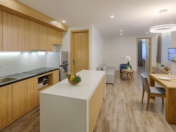 Хороший отель на первой береговой. Приятный и вежливый персонал. Девушка которая нас заселяла,любезно предоставила нам осушитель воздуха, который нам очень пригодился. В номере была удобная кухня и вся посуда,вплоть до кастрюль.