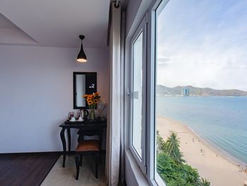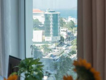 Вид из окна номера на 7 этаже на море шикарный нет впереди стоящих зданий , только дорога , пальмы и длинная линия моря, слева Сад камней). Фото соответствуют , но не так все ярко и гладко.. Кровати большие , удобные, одеяло тонкое. Кондиционер обычный , дует на ноги. Месторасположение на северном пляже (до центра 10 минут на такси , 50-70 тысяч донгов, вечером не всегда быстро такси вызвать ). Рядом ресторан , кафе, массаж, но не так в избытке как в центре. Пляж чище, чем в центре (можно с маской рыб посмотреть у камней). Холодильник на 2 полки плюс морозильник. На пляже платные лежаки, полотенце на ресепшене бесплатно. Лифт есть. Персонал приветливый , старается помочь. Чайник , две маленькие чашки , ложек не было. Насекомых нет !!!! Были три ночи. Отелю 7 за Вид из окна и отсутствие насекомых. Номер на троих 28 дол. США .