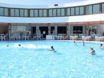 Лежаков у бассейна на всех не хватает.