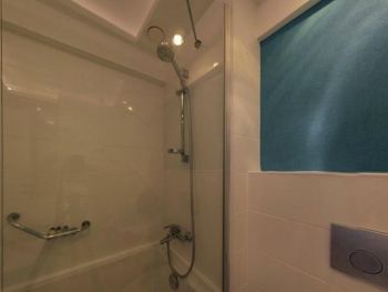 Было всего два полотенца, хотя заявлено , что это 4*. Очень тесный душ. Пойти и помыть ребенка и уже тесно. Первый раз встречаю такую тесно важную в 4*.. За сутки проживание дважды ломалась дверь ( звучит как тревога) и не работал свет.