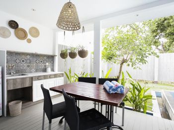 Очень милый отель. Приветливый персонал, помогают по всем вопросам. Вкусный большой завтрак. Сначала бронировали 2 виллы, но они нам не понравились, был странный запах, старая мебель. Нас оперативно переселили с детьми в двойной номер с джакузи наверху. Там все отлично! Прекрасный вид на океан, номера огромные! Рядом супермаркет, много ресторанов, прачечные, массажные салоны.