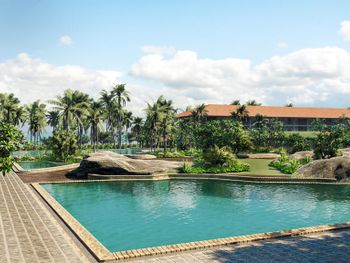 Переезжали из Унаватуны в Бентоту на такси 1,5-2 часа с маленьким ребенком 3 года. По приезду в отель вынуждены были ждать заселения еще 1 час, т.к. выехала большая группа спортсменов и не успели убрать номера, по словам персонала. Но выезд в 12.00, а это было уже к 15,00.??? В это же время видели как заселили две пары европейцев, а мы с ребенком все сидели... Высказали свое возмущение - угостили бесплатными напитками. Далее нас проводили в худший номер в отеле - вид с балкона на внутренний двор на мусорку, и парковку байков (вероятно для персонала), рядом дорога! И это при полупустом отеле!!! Возмутились, через 10 минут переселили в другой номер. После такого приема хотели выехать и забыть об этом отеле. Но решили остыть и осмотреться. Размер номера и условия - не плохие. Но персонал, который убирал в номере и пополнял запасы кофе , просто клянчили чаевые, пока муж не рыкнул (по русски, но и без перевода все поняли). После этого проблем не было. Сотрудники в баре у бассейна полная противоположность - очень доброжелательны, даже предупредительны. Наш им респект и благодарность за отношение. Бассейн понравился, купались только в нем. Ходили к океану каждое утро, но только прогуливались, т.к. почти всегда волны, с ребенком не рисковали купаться. Песочек на пляже мягкий, прямо пушистый. На завтрак не было овсяной каши, приходилось ребенка кормить блинчиками. Пища в основном острая. Очень много всякой живности - бурундуки, игуана ходила у бассейна (очень крупная). На ужин ходили в местные кафе. Деньги меняли в ювелирном магазине (курс выше, чем в отеле). Рядом железная дорога, так что поезд слышно везде. Нам не мешало. В общем, отель неплохой, но рейтинг явно завышен, второй раз в него не поеду. Совсем забыла, очень высокая влажность, даже постель и все вещи, висевшие в шкафу, были отсыревшими.