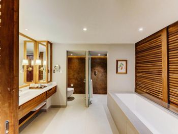 отдыхали в феврале 2023г. Отель большой, красивый, номера просторные, интерьер красивый, персонал вежливый. Хороший набор туалетных принадлежностей. Очень понравилась открытая веранда в номере. Была даже мочалка. И зонт в номере. Он как-раз пригодился. Понравились бассейны (правда полотенца пляжные не всегда бывают. надо искать человека). Но! Ночью был дождь и все матрасы утром были насквозь мокрые. КАК? Почему их не убирают под навес? Пляж превосходный. На этом плюсы заканчиваются.