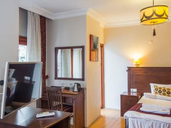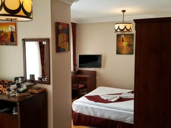 Отличное местоположение, влюбились в локацию тихая улочка посреди огромного мегаполиса. В комнатах очень чистая и уютная,старая но ухоженная мебель номера в полное себе не маленькие, ежедневная уборка номеров вкусные завтраки на террасе с видом на кусочек моря и голубую мечеть. Пару минут до главной площади а так же до моря куча ресторанов и магазинчиков в окрестностях отеля. Дружелюбный персонал говорящий на нескольких языках которой по возможности подскажут все что вам интересно и ответят на все даже самые странные вопросы.