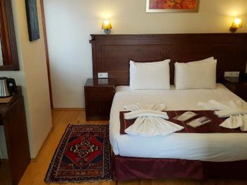 Хозяин был очень внимательный и услужливый. Но поселили нас не совсем самом отеле, а в соседнем. Хотя мы за пол года оплатили номер. В принципе нас все устроило. Чистота явно не их конёк. Но по мере возможности они сделали все очень мило. Расположение очень удобное. Улочка тихая. На крыше есть столовая. Можно заказать завтрак. Мы не заказывали. Если там и открытая площадка с видом на залив. В принципе все было очень похоже на Дели, но с турецким калоритом.