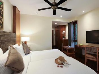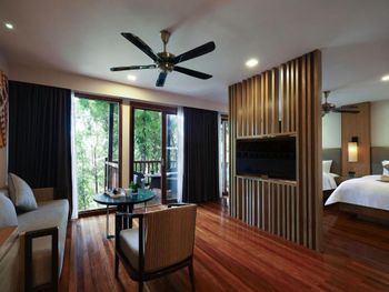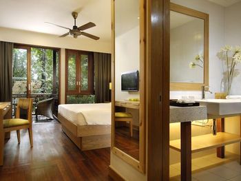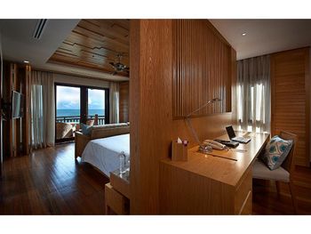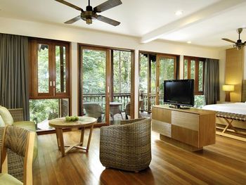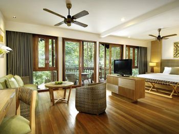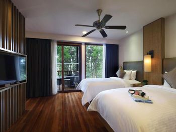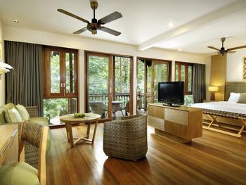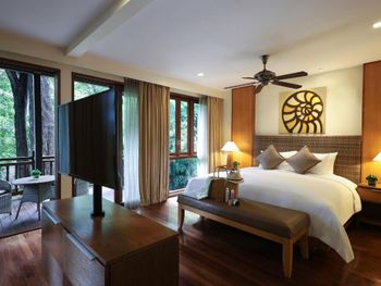Такого восторга от отеля я не испытывала очень давно! Потрясающая территория: номера расположены в домиках-бунгало на сваях, на воде, если с видом на море и в джунглях, если с видом на лес. Территория у отеля огромная, можно гулять не один день, пока всё посмотришь, ходят шаттлы электрические. Кругом животные: обезьяны, вараны, белки-летяги и невероятное количество птиц. Есть пять ресторанов, можно выбирать, где поужинать, завтрак по системе шведского стола подаётся в двух. На завтраке очень много еды, которую можно заказать чтобы приготовили, всё свежее и вкусное, есть национальные азиатские блюда. Отличный пляж, но лежаков маловато, особенно, за счёт тех, кто занимает с раннего утра и уходит куда-то по неотложным делам на целый день… Очень много разных активностей: и водные мотоциклы, и сапы, и каяки…скучать некогда, в общем. Организуют экскурсии за пределы отеля: по маленьким островам, в мангровые заросли и другие. В номерах немного уставший пол и мебель, но зато всё натуральное - никаких искусственных материалов. Постельное бельё отличное, полотенца меняют каждый день, напор воды прекрасный, сантехника исправная и есть вся необходимая косметика. А терраса на балконе неописуемо хороша!