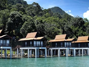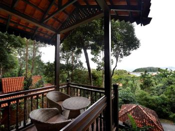 Гостиница занимает огромную территорию, на ней расположено несколько сотен домиков. Я расскажу о тех, что предназначены для пар, так как мы жили в трёх разных номерах (так уж вышло) и видели многие другие. Rainforest Chalet – это либо отдельностоящие домики, либо несколько номеров в соответствующего размера домах. По сути разницы нет, в некоторых отзывах говорили о плохой звукоизоляции между комнатами в больших домах, мы этого не заметили, но всё, конечно, зависит от соседей. Большие дома – это обычно три номера сверху и три снизу. Сначала мы жили как раз в таком – посередине сверху. Среди прочего, в номере есть фумигатор (и он нужен). Вид с балконов ОЧЕНЬ разный и шум от проезжающих «шатлов» тоже. Территория гостиницы огромная и гостей развозят на «шатлах» - их можно вызвать из номера, а также с ресепшн. Это либо электрические гольфкары, либо аналогичные, но бензиновые машины, которые вполне громко шумят движком. Часть домиков имеют вид на дорогу к гостинице, а также парковку. Есть и очень удачное расположение, где и «шатлы» ездят нечасто, и вид из окна/с балкона – прекрасный. Читая отзывы, учитывайте, что люди могли жить в разных местах с соответствующим шумом и видом. Нам повезло. Природа тут настоящая – в лесу живёт два вида обезьян, которые приходят в гости. Летает много разных птиц, часть из которых вьют гнёзда прямо под крышами домиков. Другая категория номеров, о которой я хотел рассказать – это Premier Chalet On Water. Домики на воде. Их хорошо видно на фотографиях гостиницы или на спутниковом виде google maps. Как нетрудно заметить, вид из них может быть разный. Домики стоят прямо над водой на столбах. На веранде есть свои лежаки. Очень здорово сидеть на веранде с видом на море, острова,, а вокруг – вода, даже внизу. В пешей доступности (10 минут пешком от ресепшн) находится главная достопримечательность острова – канатная дорога к Sky Bridge, а вокруг неё располагается так называемая «Oriental Village», где куча магазинов, ресторанов и уличной еды.