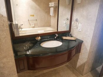 номерной фонд уставший; на креслах были пятна; халаты маленькие, максимум на размер L; окна внутри были плохо помыты – следы жира от предыдущих гостей; лампочка для чтения НЕ выключалась, и, вроде бы, это не проблема, если бы сотрудники отеля снимали телефонную трубку, когда им звонят гости! мне пришлось спускаться на рецепцию, чтобы сказать о проблеме со светом; свет в туалете и ванне очень тусклый.