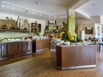 Завтрак и ужин со шведским столом не очень - на завтрак очень небольшой выбор, ужин-буфет достаточно дорогой и не очень вкусный. НО по меню - готовят великолепно, огромные порции, дико вкусно и недорого, классное фруктовое вино, десерты, паста, салатики.