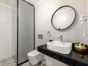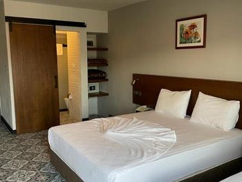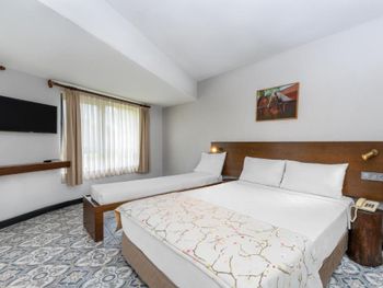 Стандартный номер оказался очень унылым. В номере стояла дополнительная кровать на 3-го человека, которого не было в бронировании, так как номер небольшой площади то дополнительная кровать не выглядит уместно.