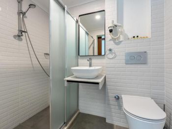 сломана перегородка в душе не была починена не смотря на многочисленные просьбы, балконная дверь не закрывалась до конца, лампочка над входом не работала, также не была починена, не смотря на соответствующее обещание. Платный вайфай в номере. Завтрак - так себе.