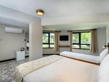 Первое и очень важное! Отель совершено не отвечает на звонки, сообщения, из 10 звонков в день 10 не отвечено, сообщения за 14 дней не ответили . При заселении нас встретила девушка администратор, и на мой вопрос почему же они не отвечают , ответ был таков ; « Я ОДНА РАБОТАЮ, мне некогда , я не успеваю?». Далее интереснее , я бронировала номер с двухспальной кроватью, обычный стандарт, администратор мне сообщила, что номер который мы бронировали не могут предоставить , но они сделали апгрейд и дают номер с односпальными двумя кроватями ???. В смысле ?? Перед оплатой я прошу показать этот номер , и хорошо, что попросила, номер настолько плохой, как будто попал в старый дом к бабушке, стены где весит телевизор , грязные, номер неопрятный - точно не как на фото . Номер требует Скорейшего ремонта ! В этой комнате к вам точно придет депрессия ?. Мы отказались от такого предложения))) и благо администратор пошла нам на встречу и предложила номер Forest . Спасибо ей за это ??.