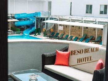 BESO BEACH HOTEL — это отель с 4 звездами на первой линии города Агва. В распоряжении гостей сезонный открытый бассейн, сад и ресторан. Гости могут воспользоваться круглосуточной стойкой регистрации или аквапарком. Гости могут посещать сауну и хаммам или наслаждаться видом на город.