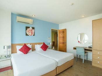 Персонал не особо доброжелательный особенно касается персонала на завтраках. При раннем заезде взымается 300бат за номер.Завтраки 5 видов риса. Выбор остальных блюд скудный . Мой завтрак ежедневно это были мюсли с молоком ,потому что за месяц проживания попадался дважды волос в еде.Очень много оббитой посуды. Без тапочек в номере не походишь так как ноги потом не отмыть . Мебель очень старая , электрический чайник в ужасно грязном состоянии в принце как и весь номер жили в номере делюкс но это одно название . Слышимость между номерами ужасная , это самое страшное что могло быть , когда ты слышишь соседей их разговоры и не только .Территории в гостинице нет , если вы с маленьким ребёнком гулять нет возможности . Территория на бассейне не ухоженная , старые лежаки в количестве 7 шт .Детская комната представляет 2 маленькие старые горки и качалки 3 шт,игрушек в ней нет . Вай Фай работает с перебоями , бывало что отсутсвует .Не советую