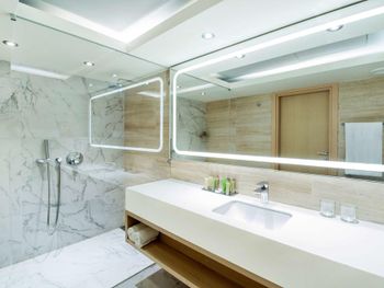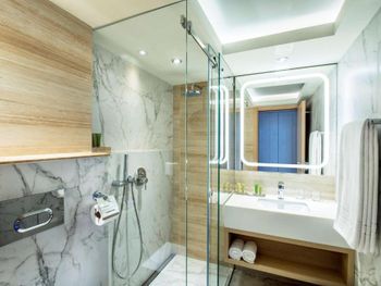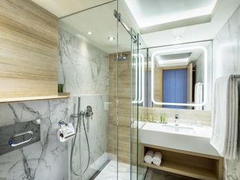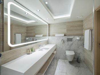 На завтраке стоило бы иметь кофе-машину, которая делает кофе с молоком (капучино, латте и т.д.), потому что очень много времени занимает ожидание, пока одна сотрудница бара сделает каждому гостю капучино/латте... Персонал в ресторане на крыше невнимателен (посадили нас и 20 минут мы ждали, пока нам принесут меню (при этом проходили по двое недалеко от нас несколько раз, принося другим столикам что-то вдвоем(!?).о нас забыли просто. И пока я не напомнила, что мы ждём меню и уборки столика после предыдущих посетителей, к нам не подошли). В ванной комнате дверь душевой кабины не до конца закрывалась, и была щель внизу. Поэтому вода была не только в душевой кабине, но и на полу около неё, промочив все полотенце для ног.