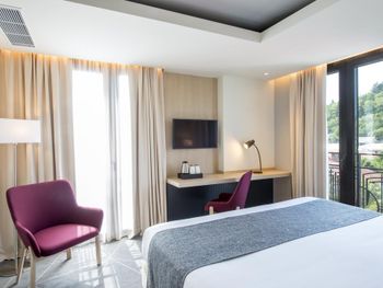К сожалению, наше пребывание в отеле оставило много неприятных впечатлений. Начнем с номера: в нем отсутствовали элементарные вещи, которые ожидаешь увидеть в отеле такого уровня — не было подставки под чемодан, ложки для обуви, и никаких косметических принадлежностей. Вся косметика в номере имела сильный виноградный запах, что, возможно, специфика региона, но для людей с аллергией, как я — астматик, это огромная проблема. Завтрак — это отдельная история. Это один из худших завтраков, которые я когда-либо видела. Еда скудная, разнообразия нет, что особенно усложнило ситуацию для моего мужа, который сидит на диете. Персонал не соблюдает санитарные нормы: они раскладывали еду прямо в зале, используя одни и те же перчатки для разных продуктов, что выглядело просто отвратительно. Капучино и латте не входят в стоимость завтрака, а когда мы заказали кофе, он оказался ужасным. И к тому же, официант подошел к нам выяснять, как мы будем оплачивать кофе, прямо во время еды, что было очень неудобно. В самом номере мебель старая и уставшая, ковролин и постельное белье в пятнах, хотя это не грязь, а просто уже въевшиеся пятна. Полотенца были разной серии, что тоже удивило для отеля такого уровня. В ванной комнате душ протекал, и вода постоянно натекала на пол, а сам санузел был крошечным. Также стоит отметить, что на этажах работает очень сильный ароматизатор, что снова проблематично для людей с астмой. В нашем втором номере на третьем этаже запахи с кухни проникали в комнату, что было совсем неприятно. И после 9 вечера в отеле нельзя поесть — кухня закрывается, и остается только заказывать напитки, что очень странно для отеля 4 звезды. Самое неприятное — это отношение персонала к нашим жалобам. На все наши вопросы менеджер просто пожал плечами и сказал, что это лучший отель в городе и что лучше мы все равно не найдем. Извинений не последовало, и никаких мер не было принято. Очень разочарованы и точно не рекомендуем этот отель
