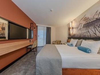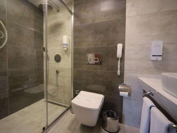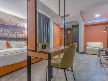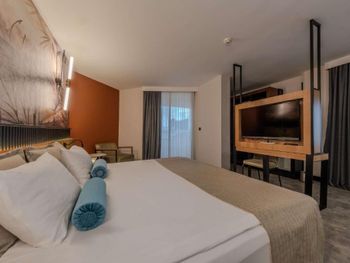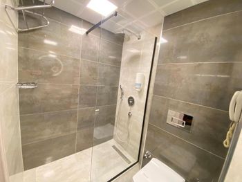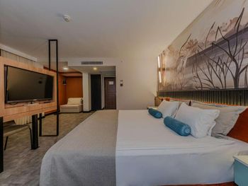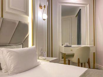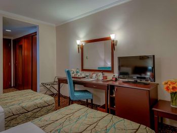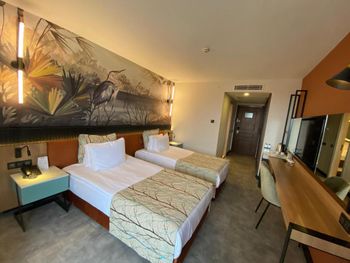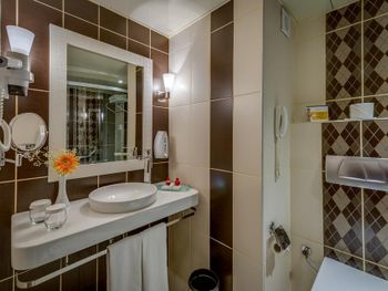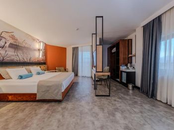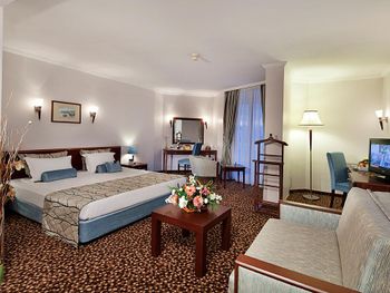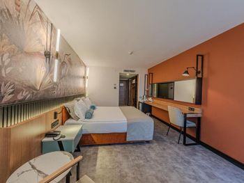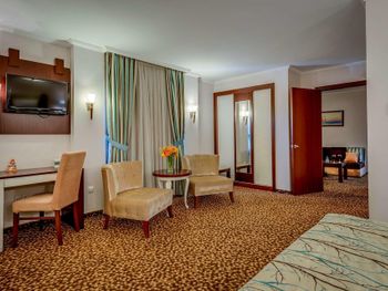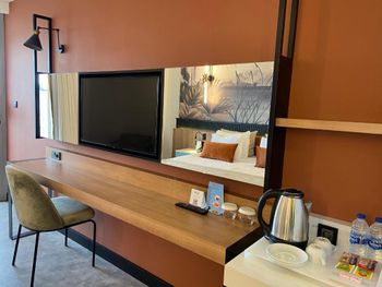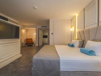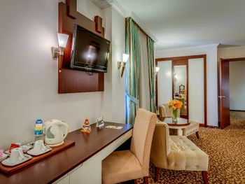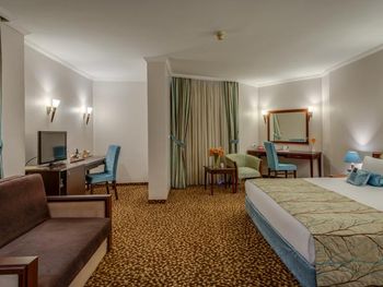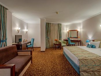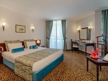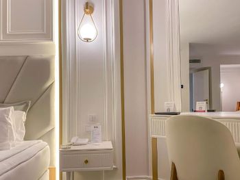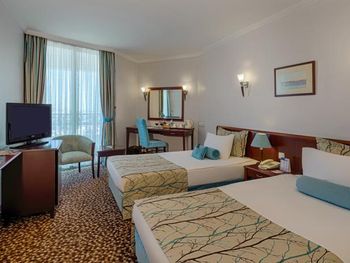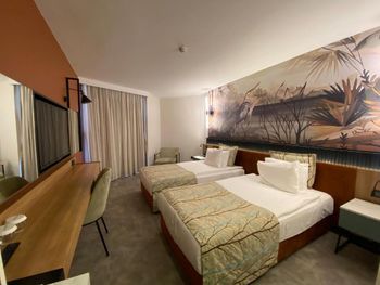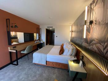 Чтобы понять реальное состояние номеров, прибавьте к фото +10лет. В нашем полулюксе был разлит по ковру лак для ногтей, принимать душ в полный рост невозможно, приходится для этого садиться на корточки и душ держать в руке над собой. Пока мы завтракали, уборщица зашла в наш номер, на котором висела табличка «не беспокоить» и украла из сумки устройство айкос( как оказалось, в Турции электронные сигареты запрещены, поэтому на чёрном рынке перекупы предлагают за них тройную цену. Если едете в Турцию, покупайте стики в России, в Турции нашли только один подпольный магазин со стикамм, цена за пачку 500руб). Мы застукали уборщицу, закрывающую дверь. Спустя 15минут обнаружили пропажу, администрация отеля отказалась вызывать полицию, улыбаясь, администратор говорил, что уверен в своих сотрудниках. На мою просьбу им самим осмотреть сотрудницу, он сказал, что это может делать только полиция. Камера коридора вход в наш полулюкс не захватывала. Мы снимали отель на одну ночь, так как это был последний день перед нашим отлетом, и отель расположен близко к аэропорту. Мы на ресепшене сказали, что направляемся в полицию, но позже сопоставив время вылета и примерное время в отделе полиции, решили ехать сразу в аэропорт. Спустя пол часа сотрудники отеля написали мне, что они нашли наш айкос под простынями. Где он был на самом деле, мы знаем со 100% уверенностью. Айкос нам отправили с такси в аэропорт, естественно за наш счёт.