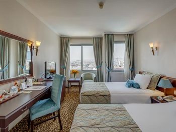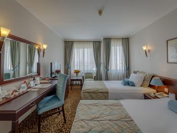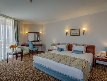 Расположение отеля очень хорошее. Приехали на такси из аэропорта утром. Заселили на несколько часов раньше обозначенного времени заселения. Номер просторный. Вид из окна на море- просто на отлично! Номера хоть и несколько уставшие, но комфортные и чистые. Постель удобная. Завтрак хороший.