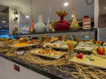 Каждый день в ресторане Falez сервируется завтрак «шведский стол», а в течение дня подаются фирменные блюда турецкой кухни. Коктейли и легкие закуски можно заказать в баре Best Western Aspendos, откуда открывается панорамный вид на Калеичи, пристань для яхт и море.