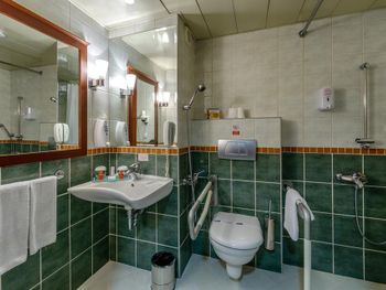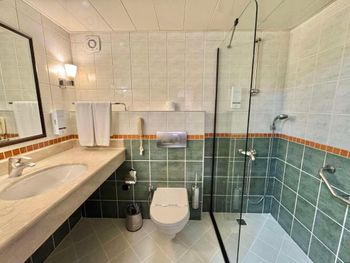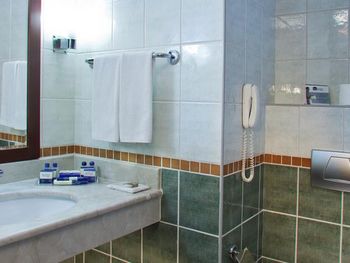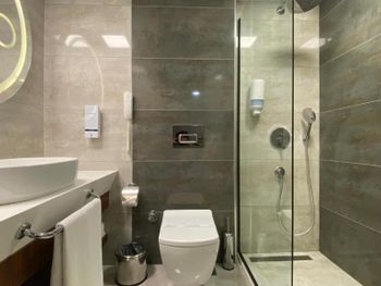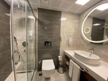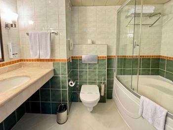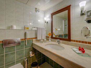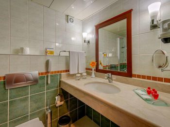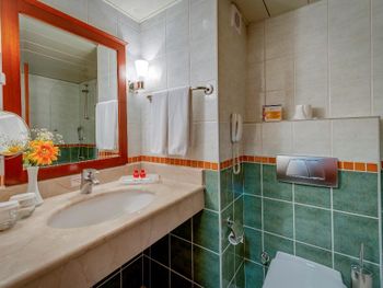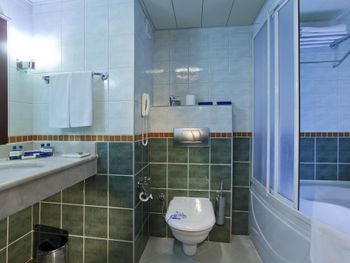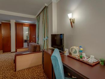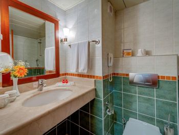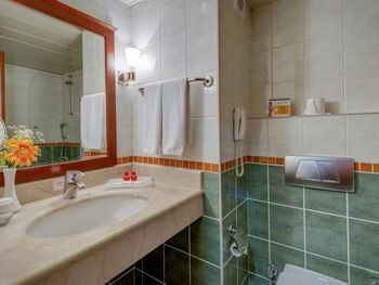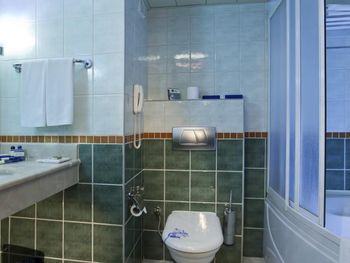 Нас не проводили в номер. Был сломан чайник, у него горел и сильно нагревался провод (414), мы не смогли им пользоваться. Не было гелей для душа. Иногда приходилось просить бумагу для туалета, звонить на ресепшн, это унизительно. В жаркое время питьевой воды мало, на двоих не хватало (август- сентябрь). Туалетная комната малюсенькая и очень тёмная, сушить волосы невозможно, сразу об голову открывается дверь туалета/ванной. Сломано и неправильно расположено зеркало ванной. Зеркало для увеличения просто болтается где то посередине роста человека и верхом на фене. Ужасная теснота. Фен старый, допотопный, шумный и дребезжит в руках. Зеркало шкафа в самом номере расположено почти на входной двери в самой тёмной части номера, не видно вообще ничего, видимо декораторы были мужчины и не понимают женских нужд. Наклон кондиционера не регулируется, дует холодом прямо на кровать. Я простыла.нужд.