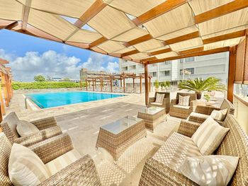 Хороший бассейн на улице с шезлонгами и баром. Но из бани до бассейна нужно подниматься на лифте. Хорошей закалки не получится.